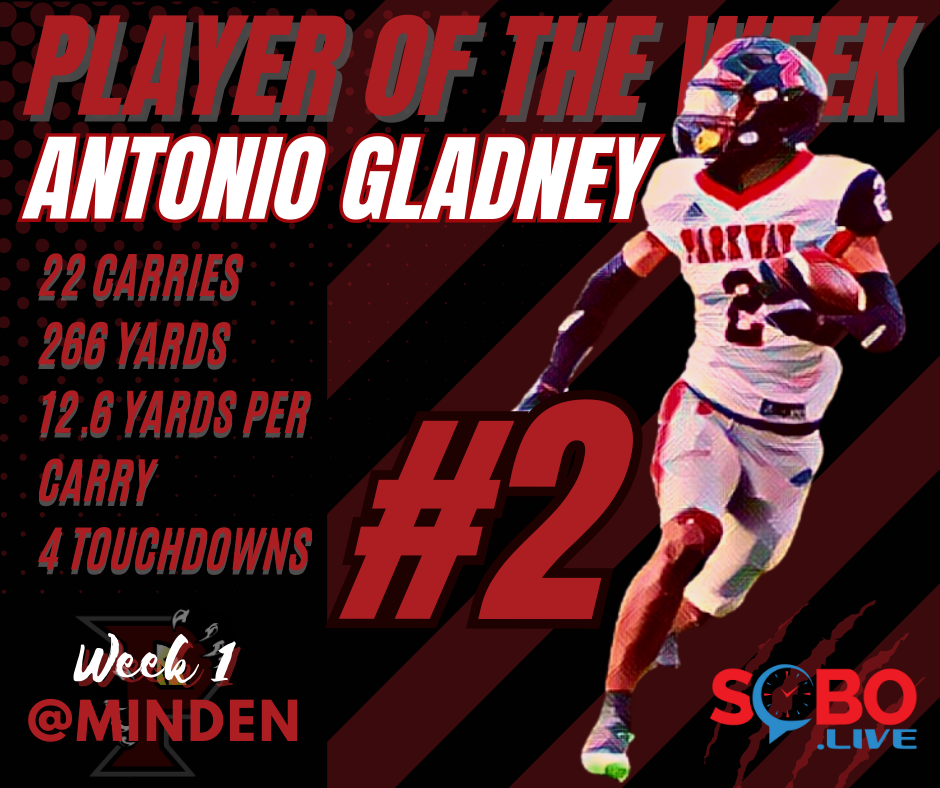 Antonio Gladney is the sobo.live Week 1 Player of the Week! Watch #2 take the Field at Preston Crownover Stadium Friday at 7pm in a Week 2 home game versus Red River High School!