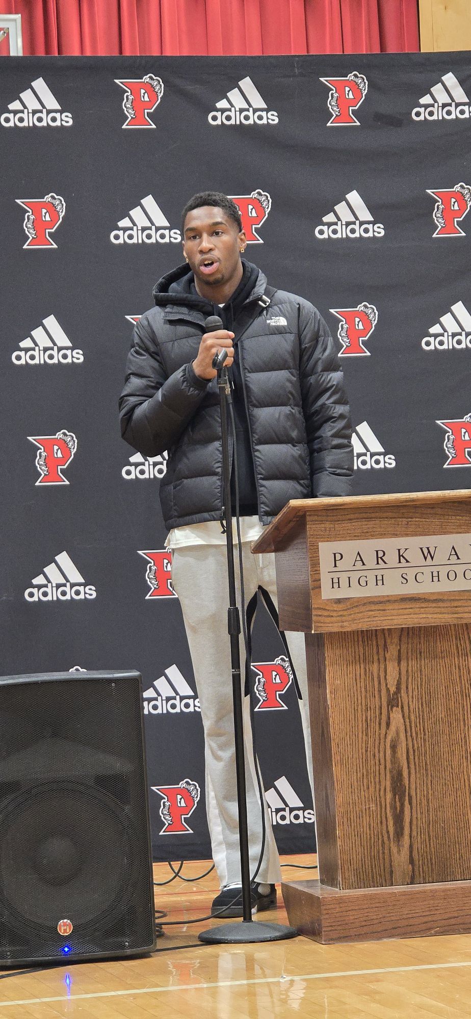 Mukuamu also presented a game-worn jersey to Parkway Footbal Head Coach Coy Brotherton and Principal Steven Vrbka. Israel finished his visit by seeing his teachers and coaches.